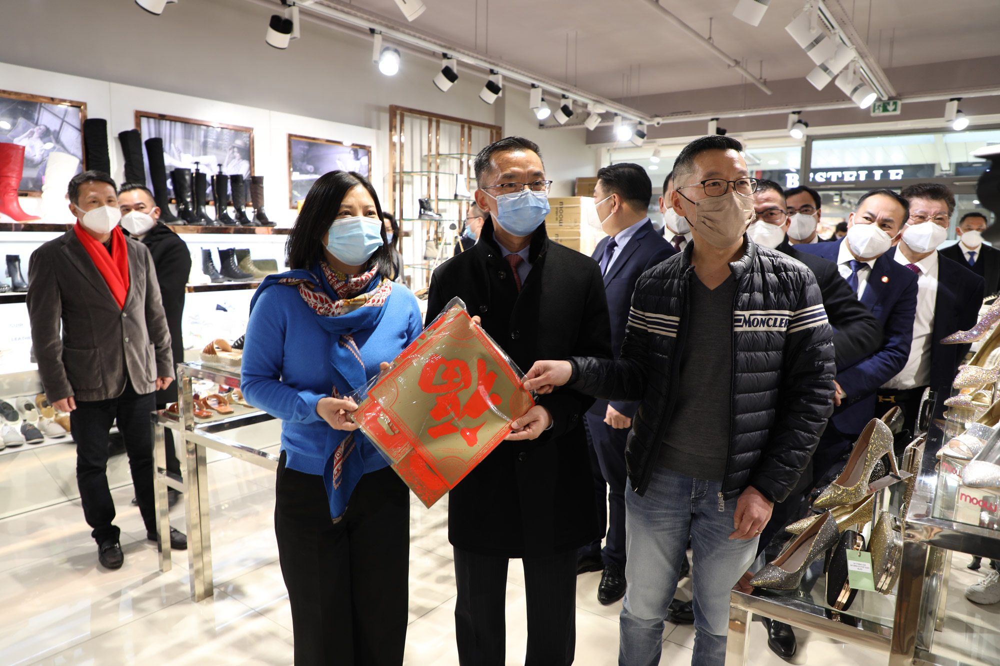 L'ambassadeur de Chine en France Lu Shaye visite les commerçants d'Aubervilliers.