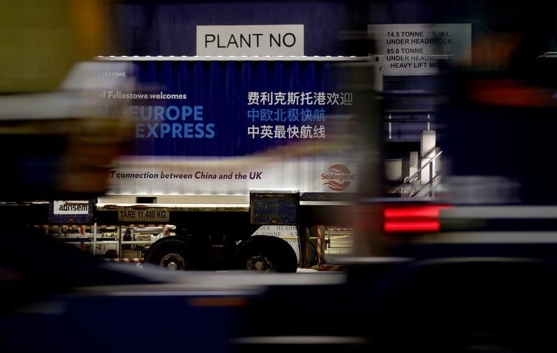 de la route express arctique Chine-Europe, amarré au port de Felixstowe au