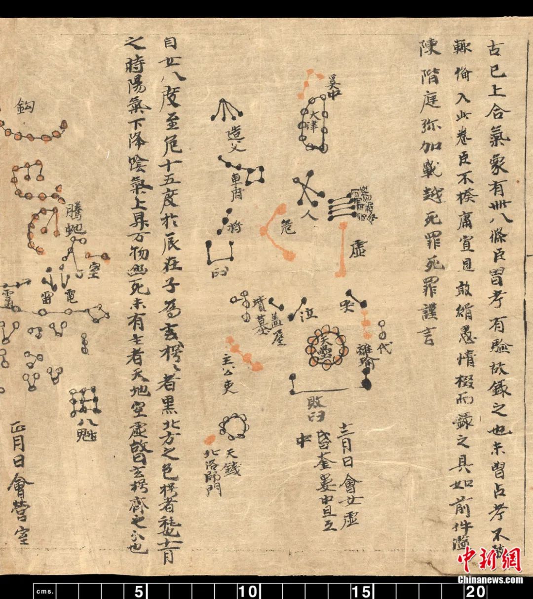 Observer les étoiles est une aspiration et une exploration communes à l’humanité depuis l’Antiquité. En effet, plusieurs des principales civilisations anciennes du monde observent les étoiles depuis des millénaires. La Carte céleste de Dunhuang, découverte parmi les manuscrits des grottes Mogao de Dunhuang, est l’une des plus anciennes cartes célestes qui nous soient parvenues avec un nombre si impressionnant d’étoiles. Il s’agit d’un document époustouflant dans l’histoire de l’astronomie, compilant une série de cartes du ciel sur lesquelles sont reproduites la plupart des étoiles et constellations visibles à l’œil nu dans l’hémisphère nord.