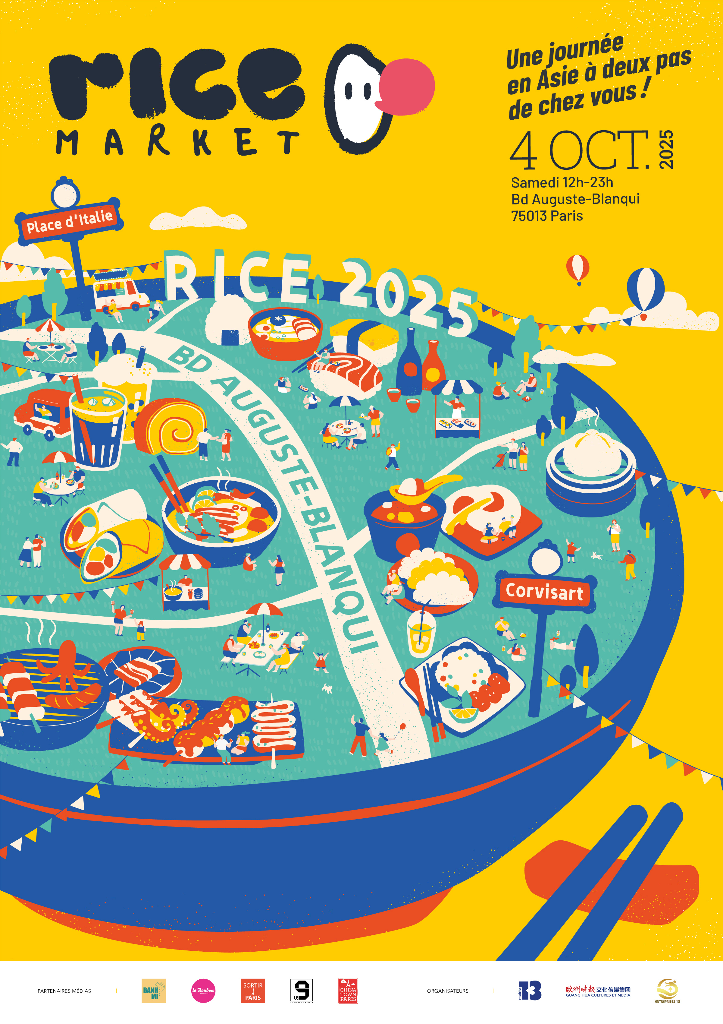 Rice revient en 2025 sous le nom « Rice Market » ! Le samedi 4 octobre, de 12h à 23h, à l’occasion des festivités de la fête de la Lune, préparez-vous pour une nouvelle édition encore plus festive et gourmande, sur le boulevard Auguste Blanqui à Paris, entre les stations de métro Place d’Italie et Corvisart. Au menu : barbecues, hot dog lao, jianbing guozi (crêpes chinoises), nouilles sautées, saucisses grillées, roujiamo (sandwichs chinois), malatang (fondue épicée), tacos japonais, riz frit à l’indonésienne... avec quelques nouveautés comme la gastronomie végétarienne.