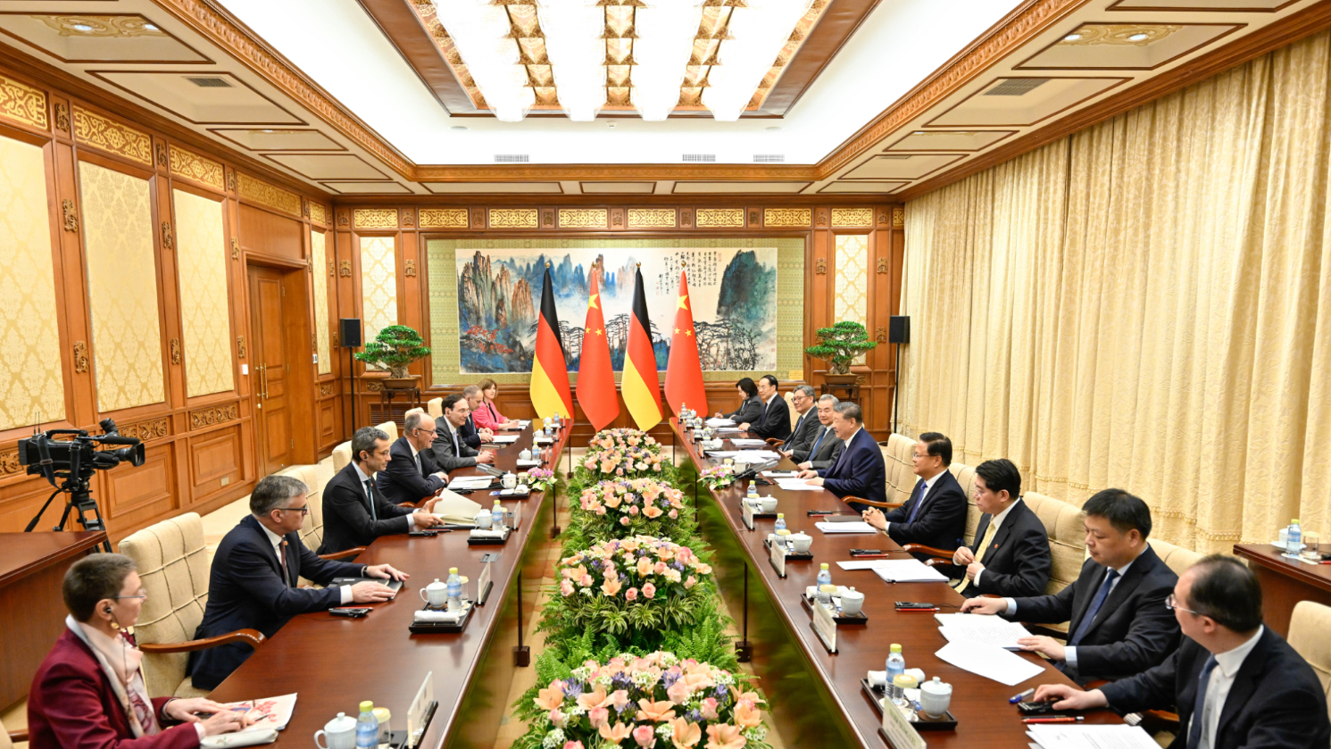 Il s’est entretenu avec le président chinois Xi Jinping, qui a salué la coopération sino-allemande dans les domaines des technologies, de l’industrie et de la culture. Le président chinois a rappelé l’importance de la relation entre la Chine et l’Allemagne pour le monde et l’Europe. Les deux pays ont réaffirmé leur attachement au multilatéralisme et à la paix mondiale. Friedrich Merz a insisté sur le caractère stratégique du marché chinois pour l’Allemagne, réitéré son soutien à la politique « d’une seule Chine » et exprimé son attachement au libre-échange.